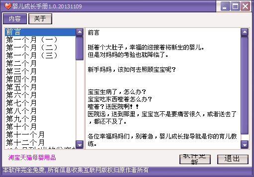 运行软件后,点击左侧内容下的列表,点击任意某篇章节就会再右边的大方框中显示相应细节。