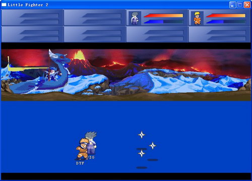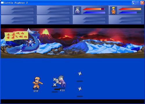 此版本是由董羽飞先生做的强化版LF2。游戏中共有十一个角色,最多能够八个角色同时混战。玩家可与计算机或其它玩家分组联合作战,亦可用淘汰赛模式。格斗时天空会随机地降下各种武器、道具,吃到好处多多哦。每个角色也有三招必杀技,当蓝色聚气条满闪烁时就能够发出它们。游戏有许多模式:决斗模式,闯关模式,战争模式,淘汰赛等等。通过编辑图片,可以任意定制地图。