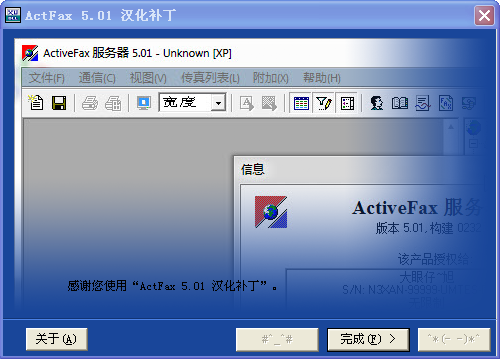 安装“actfax_setup_en.exe”,完成后不要运行程序,或即可将之关闭,否则汉化无效