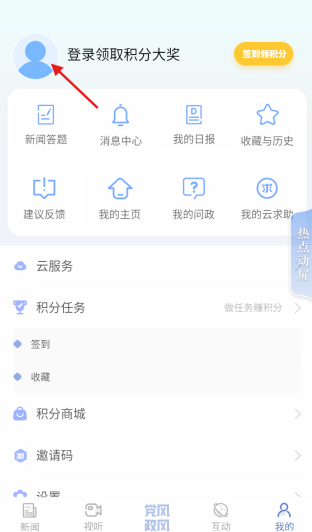 1. 开启极光新闻软件,在界面下方寻找到“我的”选项,接着点击该选项,进入个人中心页面。