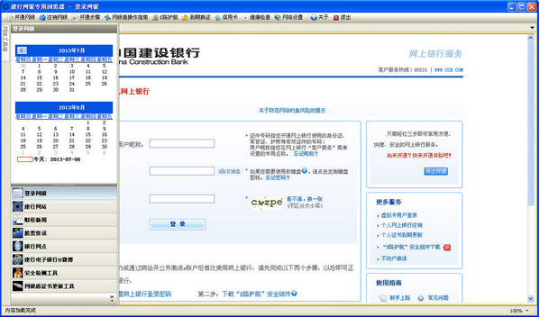 建行网银专用浏览器相当于中国建设银行网上银行的客户端。虽说建行网银专用浏览器是一个网页浏览工具,但只限于建行相关指定工具,其他网页时无法在此工具上浏览。