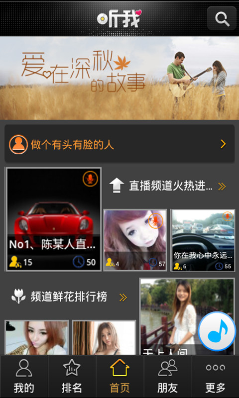 听我dj是一款专注音乐会友的手机应用,拥有海量的高品质音乐,无数活跃DJ分享好的音乐给你!百万俊哥靓女在这里向你招手:来“听我”的频道,有我的音乐,有我的故事。大家一起边玩边聊,乐趣无穷。