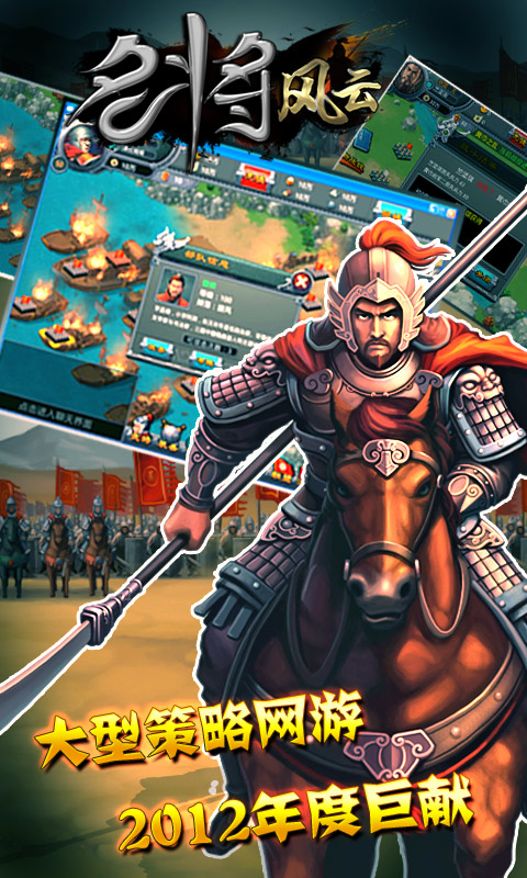2013年最火爆战争策略型手机网游,以三国题材的模拟策略战争民族游戏,让你体会到前所未有的战斗体验。图形界面,画面精美犹如客户端游戏。游戏内容丰富,在传统战略游戏的建设、科技、征兵、贸易、结盟等等有趣的玩法等您探索。让您自然融入那个战火纷飞的三国时代,过乱世英雄身份亲历沙场,号令三军,尽享坐拥名将的精彩;还可通过丰富特色系统开疆辟土,攻伐进退间书写一段专属于你的全新霸业传奇!