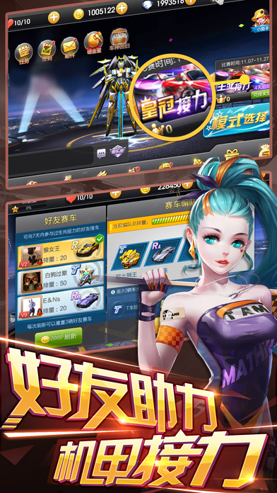 和你的微信好友、QQ好友一起比拼,看看谁才是飞车之王!随时随地向左右人展示你的技术、向他们发起挑战。快速的接近一个又一个好友,加速从他们身边驶过,直到行驶在队伍的最前面。