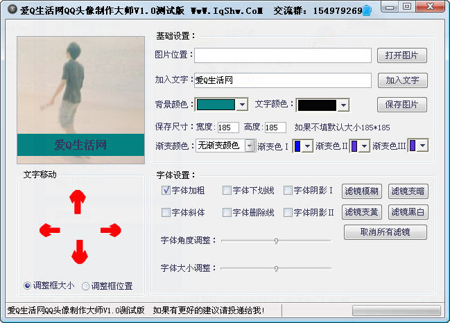 【概括介绍】爱Q生活网QQ头像制作大师是一款绿色简单的QQ头像制作器,想让你的头像与众不同嘛,快来拿走它把
