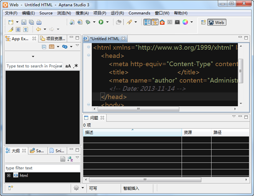 然后重启运行Aptana Studio 3就是中文版了,简单吧 呵呵!!!可以说是Web2.0最全面,最强大的开发工具了!