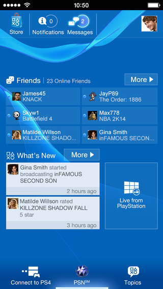 PlayStation App》是一款辅助软件。随时随地游玩。通过 PlayStation App 将 PlayStation 的游玩体验带到您的移动设备上来!应用程序的功能可让您随时与玩家好友和您喜爱的游戏保持亲密接触。从 PlayStation Store 挑选游戏并下载到 PS4 主机,回到家即可马上游玩。你可以轻松浏览 PlayStation 主机指南、说明书和 PlayStation.Blog。要使用此应用程序的所有功能,需准备 Sony Entertainment Network 账号和 PS4 主机。
