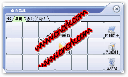 桌面总裁 V5.8.1.1 简体中文绿色特别版 桌面总裁不仅仅是一个管理桌面上应用程序软件!使用桌面总裁可轻松地管理windows系统中所有文件和目录,使您得心应手!通过桌面总裁你将不用费什么力气就能将计算机里的常用的文件和目录有效的管理起来,而且每个按钮所代表的快捷方式不光是有图标和描述信息显示,当鼠标经过时会有提示。建立完全个性的应用界面,方便您的的日常操作和管理