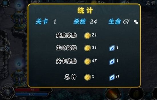 敌人们会随着关卡变得越来越强大。崭新而华丽的BOSS也会逐渐登场!战斗吧,成为救世主,在排行榜占据一席之地生命值到30%一下就不给水晶了,所以血量不够就放水从新来吧,水晶很重要。