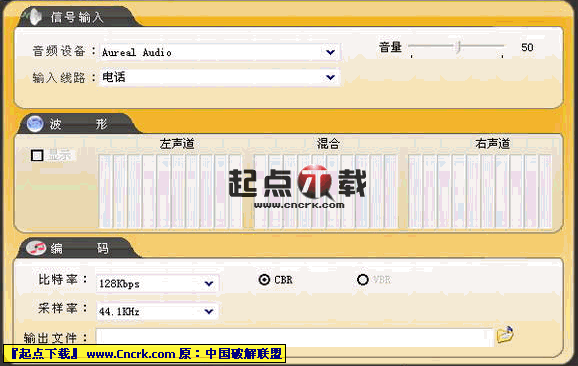 嘉音高清MP3录音机是一款功能强大的MP3录音编码软件。支持32KHz、44.1KHz和48KHz采样率,实现从32Kbps到256Kbps比特率压缩编码,支持VBR/CBR编码,能够轻松实现从语音音质到高清数字音频音质的录音编码。支持PC和大部分主流中高档声卡,支持麦克、CD、线路、数码输入线路选择。波形分析器能够实时显示音频信号强度