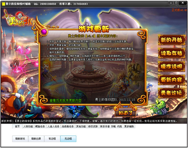 勇士的信仰残叶辅助支持勇士的信仰最新游戏版本,有主要功能,人物功能、鳄鱼任务、人造人任务、洗炼卷任务等功能,安全无毒,欢迎下载体验。