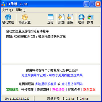 27代理破解版就是27代理免费版,它是一款兼容性很强的专业的网络加速器,能让魔兽世界、英雄联盟、CF等网游延迟保持常绿,大大提高网络速度,有效降低网络延迟。
