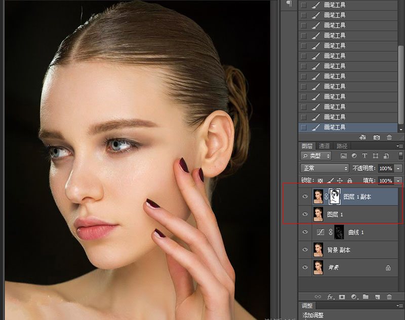 第二步:用“曲线”磨皮