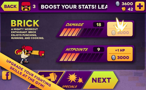 超级街战Big Action Mega Fight!是Double Stallion Games独立游戏工作室推出的游戏,在游戏中玩家除了能够利用双拳狠揍街头痞子外,还可以召唤出神勇的“爆炸鸡”为你助阵,场面很是火爆。玩家选择美漫风格的各式角色,进入各个城市街道关卡中痛扁敌人。游戏目测采用点触+手势的形式操作,直观方便,玩家只需要敲击或滑屏即可施展各种生猛招式。面对大波敌人围攻时还可以放出清屏大招,效果非常华丽。|《超级街战》是一款横版格斗游戏,美漫画风及电子配乐都相当的复古,很有几分早年街机游戏的风范,带感的音效令游戏打击感十足。玩法相当简单,就是进入各个城市街道关卡中痛扁敌人。游戏目测采用点触手势的形式操作,直观方便,玩家只需要敲击或滑屏即可施展各种生猛招式。面对大波敌人围攻时还可以放出清屏大招,效果非常华丽。