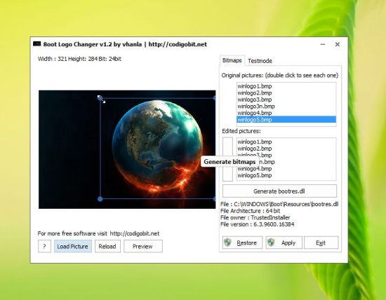 8oot Logo Changer是个免费的Win8启动画面修改程序,可以将Windows 8/Windows 8.1的启动画面修改成你想要的图片。