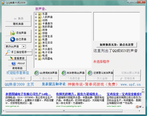 QQ换音大师2009版,新增加了对QQ2009的支持,并新增加一个“随机换音”按钮。使用更方便。