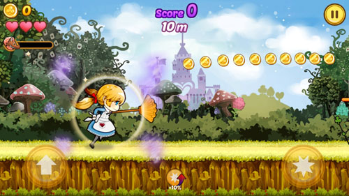 爱丽丝梦幻跑酷安卓版讲述的是爱丽丝在一个和平安宁的梦幻国度里过着平静的生活。但是突然一天,一个邪恶的女巫把平静打破了。女巫把爱丽丝的动物朋友们变得凶残化,你需要帮助爱丽丝去拯救她的朋友们,把女巫赶出去。