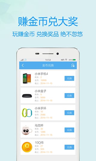 1.玩游戏拿金币,每天小米手机、盒子、手环、Q币海量礼品兑换;