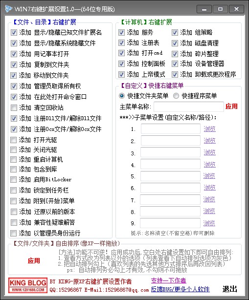 4.新增功能:快捷文件夹和快捷程序菜单,可以各自定义主菜单名字和9个子快捷菜单