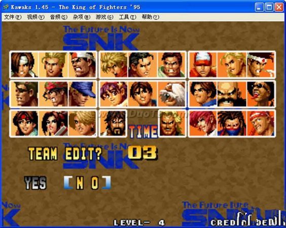 拳皇95是日本SNK公司于1995年推出的一格斗游戏,拳皇95画面更精致。连续技更加流畅,而且还加入了自由组队的系统,玩家可以选择自己喜欢的三名角色组成队伍作战,不再像前作那样硬性规定的三人组合了。游戏共有24名基本角色可供选择,加上两名BOSS一共是26人,人气角色八神庵将在本作首度登场。