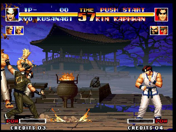 KOF系列第2弹,大蛇篇的第一季。导入了组队编辑系统,玩家可以选择自己喜好的角色,组成队伍,并增添了许多新要素。作为草薙京的敌手的超级人气角色八神庵首次登场。