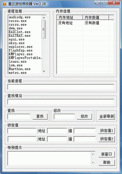 8、如要重新查找或刷新进程请按全部刷新。如果同时需要修改和锁定更多的值,请点击新任务,即会出现和主界面相似的窗口,操作完全一样。