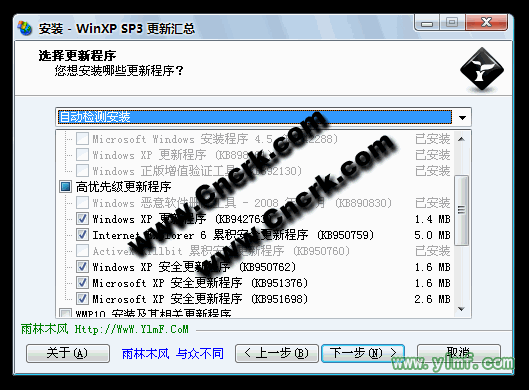 安装程序会自动检测跳过系统已安装的更新程序。支持 nLite 集成系统的更新程序自动检测!