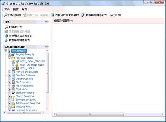 修复系统注册表的工具,能修复你的注册表并让你的电脑运行到最佳化,只有很少的几步简单操作,你就可以找到引发错误,附注的连接注册表的相关程序。提供一个错误清单,你可以选择全部自动修复和单个的修复。