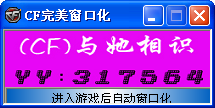 与她相识cf窗口化是由七零星空论坛制作的一款穿越火线窗口化工具,软件非常好用,进入游戏后自动开启窗口化,操作便捷,欢迎下载体验。