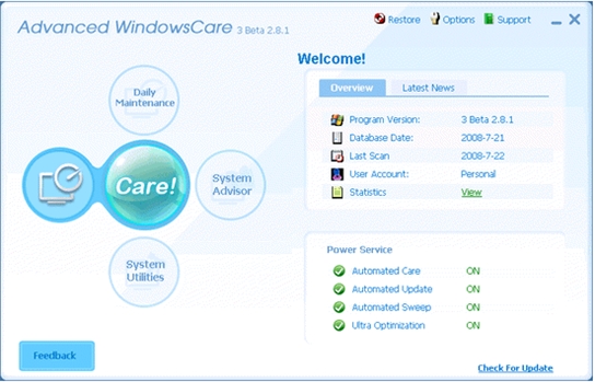 Advanced WindowsCare V2.9.0.866 多国语言绿色免费版 想知道制约你的系统性能提示的瓶颈在哪里吗?想针对这些问题进行优化吗?试试Advanced WindowsCare吧。它通过对系统全方位的诊断,找到系统性能的瓶颈所在,并将测试结果显示出来。我们只需要选择“Repaire”命令,然后单击“Go”按钮即可启动软件的智能修复功能