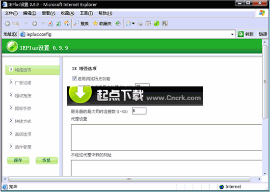 IEPLUS是根据微软IE Addon规范开发的一个增强性插件,弥补了系统自带的IE6和IE7在使用上的不方便之处(例如IE7的标签页不支持双击关闭,网页中的URL链接无法直接拖拽打开等等),通过尽量小的资源占用使得你的IE更易于使用,浏览效率更高。