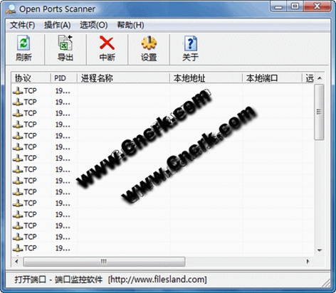 界面采用列表方式可以一目了然的看到你的机器的端口情况,他的列表分类清晰如协议,PID,进程名称,本地地址,本地端口,远程地址,远程端口,连接状态等等