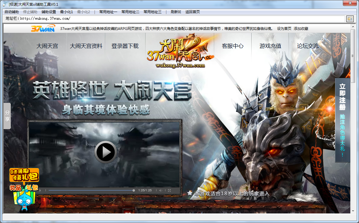 2.从本辅助工具的浏览器中选择对应登陆入口或在地址栏中输入网址,进入游戏。