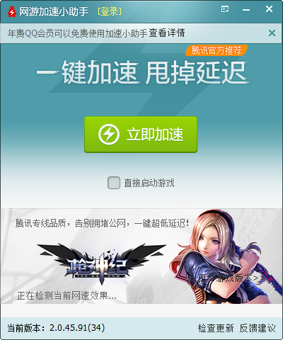 1. 仅支持枪神纪游戏的加速。