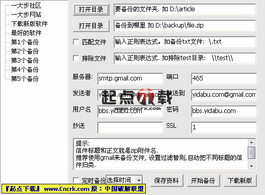 软件优势:一次运行,两次备份,确保您的数据万无一失。(备份到远程邮箱的方式和您的邮箱的允许附件大小有关)