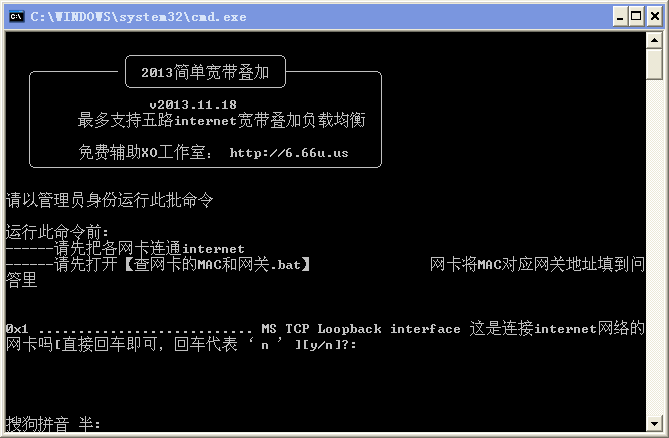 1、打开【简单带宽叠加v2013.11.18.bat】