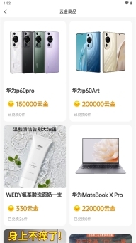 5、每次完成购物后,即可获得云金。云金能够用于兑换物品,操作时我们点击云金专区。