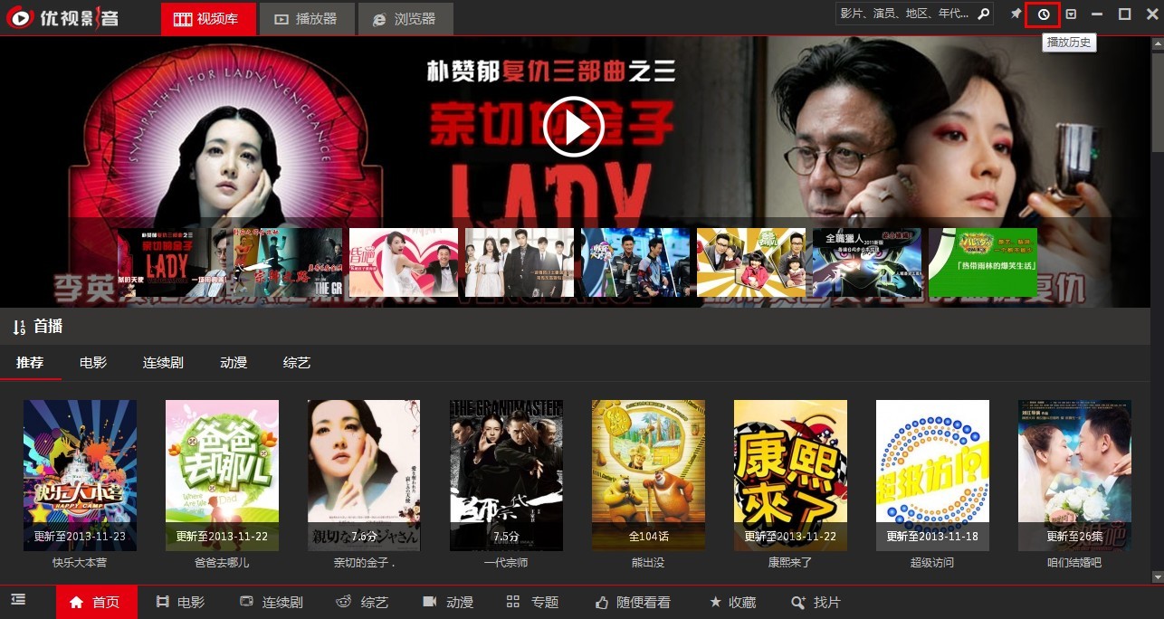 优视影音不仅支持搜狐视频的全部免费节目,更支持优酷、土豆等国内大型视频网站的电影和电视剧视频点播,只要您安装了优视影音。全网影视一网打尽。