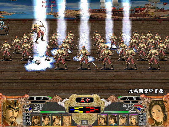 这些都还不是主要的,最主要的战争场面令人耳目一新。精美而开阔的主战场,全身铁甲的士兵。厮杀场面壮观而精致,你能清晰的看到每一个士兵的动作和打斗场面。武将技美丽且大气磅礴,发天崩地裂的时候,一条金色的龙腾向天空,下面地动山摇。必杀技更是华丽无比,“乱舞”在空中划出一条美丽的弧线,马高高跃起往下“一击”,“拖刀”在身后划出一道闪亮的光线。奔跑起来的战马气势非凡。让你感受到什么叫做金戈铁马,纵横沙场。等等这些,都足够让你留恋往返。