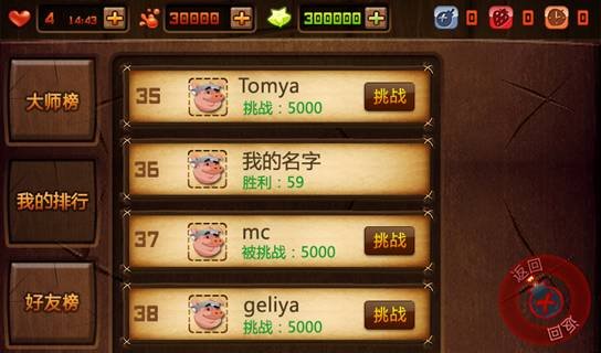 5.挑战玩法(核心玩法):挑战水果忍者大师排行榜上的玩家进行游戏竞技。
