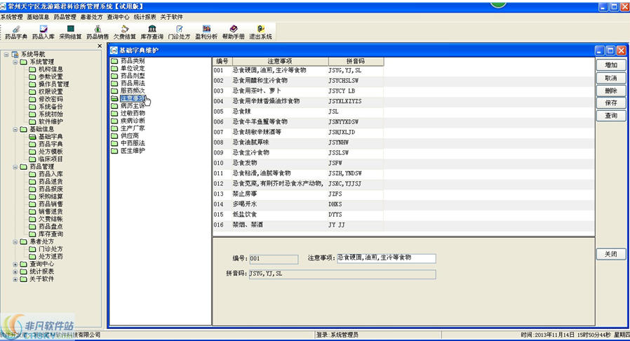 验方管理:把自己常用的方存入电脑,随时调用,并且是自己积累知识的好助手;处方管理:病员处方存入电脑,随时方便查阅、调用、分析;
