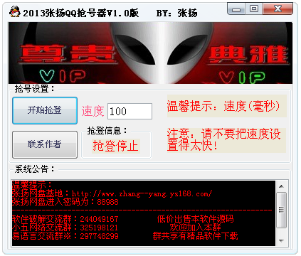 【概括介绍】如果您的QQ在别处登录时,可能是被盗号了,再未修改密码之前,2014张扬qq抢登器,它就会自动帮您登录回来。非常不错!