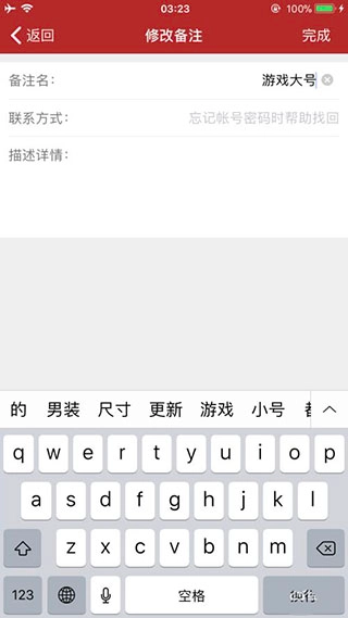 5、在备注中,我们可填写该账号信息的相关内容,如此一来,能帮助我们记住此账号的用途。