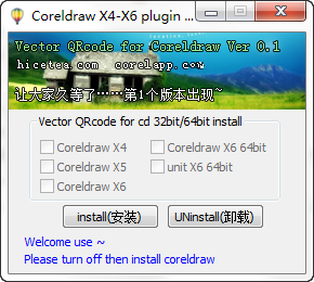 1、此coreldraw二维码插件只支持CorelDRAW X3以上版本;