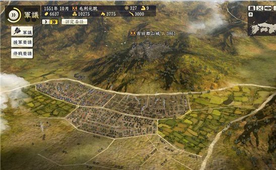 同时,合战可以将多个城池出击的军队陷入混战,从而展现动态化的一面。为此还准备了系列最多的300座以上的城池,可使合战形成多面作战。而且,合战中的视点变更也将无缝化进行。