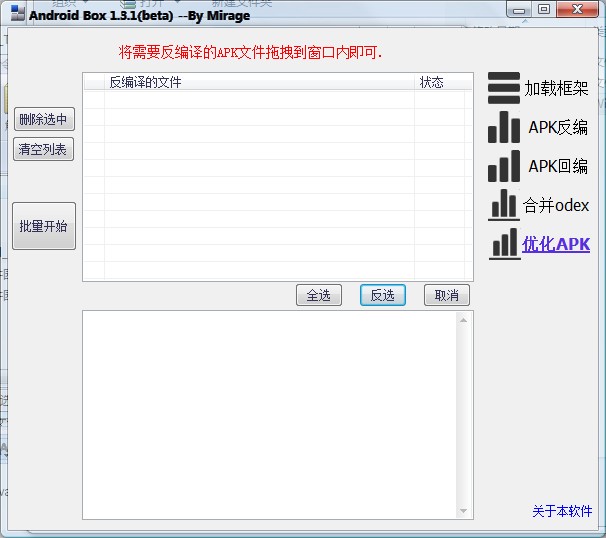 ;支持批量反编译/回编 APK文件,支持批量合并APK和ODEX文件。