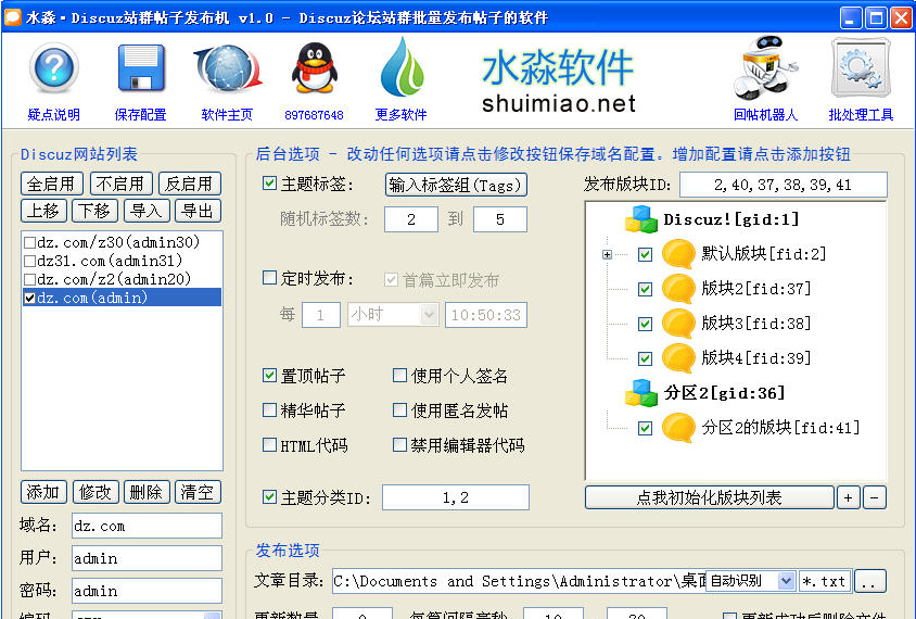 水淼Discuz站群帖子更新器是水淼软件出品的一款Discuz论坛批量发帖的软件。经过小编测试这款软件可以在Discuz 2.0、2.5、3.0、3.1正常发帖。水淼Discuz站群帖子更新器可以Discuz论坛的多个板块随机发帖且正常显示。水淼Discuz站群帖子更新器功能强大支持定时发布、主题标签、主题分类、置顶帖子、精华帖子等选项。当然,它自带的自动回帖和批量处理功能也是很实用的。