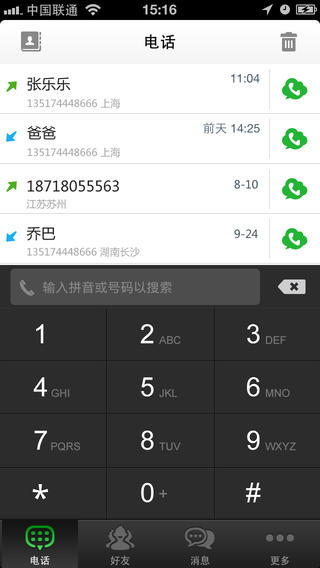 4、通通电话的通讯录功能支持号码智能匹配,联系人便捷搜索。