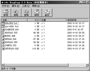 拷贝王KingCopy是一款应用于复制与修复文件的实用工具。文件拷贝王有较高的文件读取及纠错能力,能读取软盘上损坏的文件,并能对损坏的文件进行修复,恢复重要的数据。人工智能度较高,可结合到资源管理器的右键菜单,大大地简化平常的文件复制操作。在拷贝过程中有更新文件及重命名文件的功能。可跳过难读的文件。具有的文件断点续拷功能。