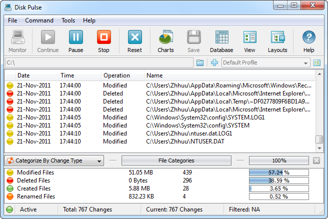 磁盘活动监控可以监视磁盘活动可监视磁盘或文件夹内的操作,删除或创建或对文件进行更改的操作,可导出日记文件